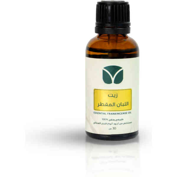 زيت اللبان المقطر من أشجار اللبان طبيعي وخالي من البتروكيماويات، والبارابينات، والألوان والمواد الحافظة الضارة، والزيوت المعدنية.